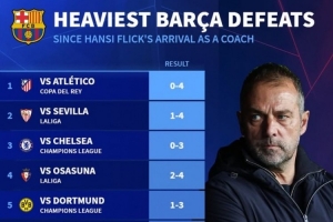 德转列弗里克时代巴萨最大比分输球: