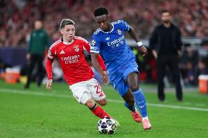 体育资讯2月20日讯 欧冠1/8决赛附加赛首回合,皇家马德里客场1-0击败本菲卡,维尼修斯打进全场唯一进球。但在进球后双方爆发冲突,维尼修斯向主裁判投诉遭到种族歧视,比赛一度暂停。