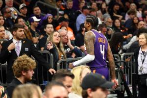 本场比赛,太阳球员杰伦·格林表现还可以,不过在下半场抢板背部重摔倒地险些受伤,替补打了16分钟,投篮9中4,三分球7中3,拿到11分4篮板1助攻1抢断的数据,正负值+7。
