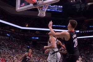 这球改成没有犯规发生,小史密斯中投两分算,马刺球权