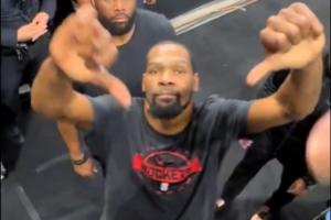 杜兰特与球迷互竖中指 嬉戏打闹