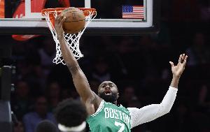 杰伦·布朗上半场火力全开,他出战19分钟,15投7中(三分3中2)、罚球2中1,拿下17分9篮板1助攻1抢断,出现3次失误,正负值+2。