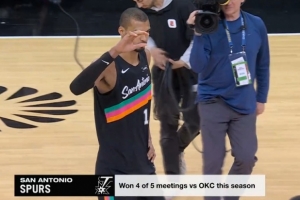 本赛季,马刺面对卫冕冠军雷霆4胜1负,胜率80%。