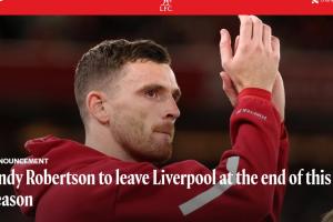 利物浦足球俱乐部官方确认,安德鲁・罗伯逊将在本赛季结束后结束自己的红军生涯。