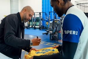 24直播网02月07日讯 国米前锋小图拉姆偶遇童年偶像阿德里亚诺,激动地拿出父亲当年与偶像交换的球衣请求签名。两人见面后紧紧相拥,小图拉姆最终如愿以偿,得到了这份承载着两代情缘的特殊纪念。