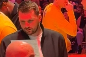 GIF-东契奇场边看技术统计